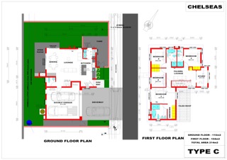 - Plan C – Double Storey – 214m2 – R3 663, 000 -4 Bedrooms, 3.5. bathrooms, study, 2 living rooms, kitchen, scullery, double garage.